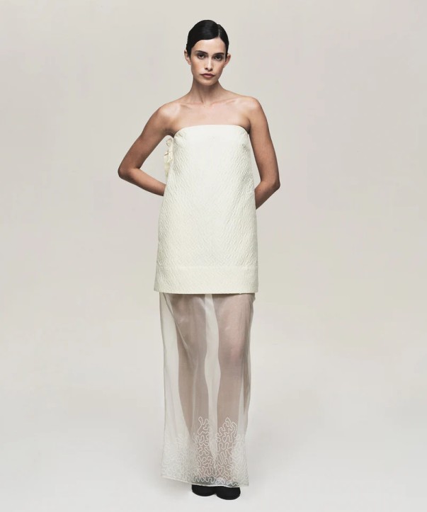 Sabine Strapless Quilted Dress in Antique White