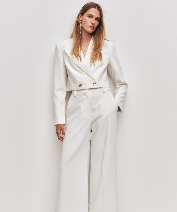 Colette Crop Blazer + Pant in Ivory