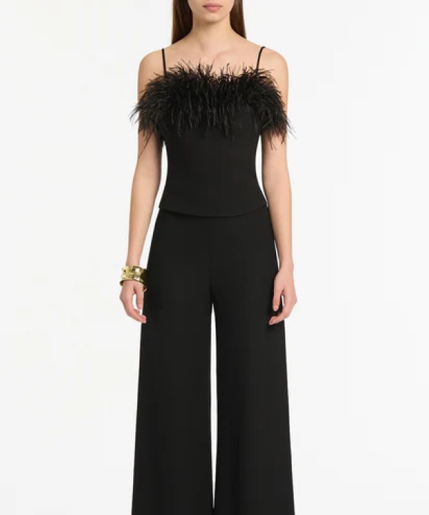 Black Crepe Feather Top + Black Crepe Low Waist Pant
